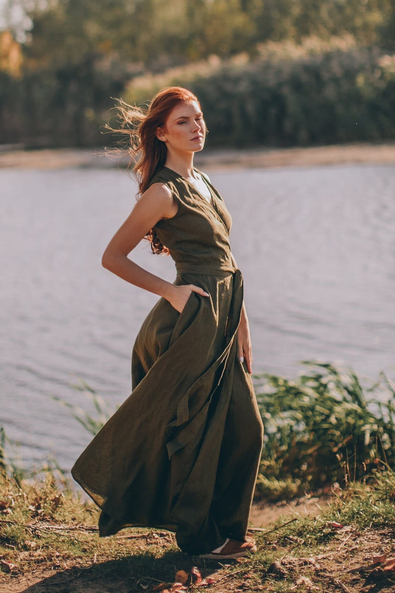 ♠Timeless elegance in its most graceful form. We would like to present you this sleeveless wrap linen dress with an elegant tie waist and a V-neck collar. Made of 100% high quality linen, this piece is available to order in multiple classic colors. Here to serve you for many seasons to come.