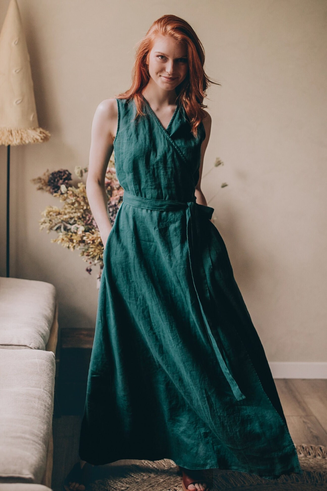 Linen Maxi Dress, Wrap Linen Dress, Linen Summer Dres